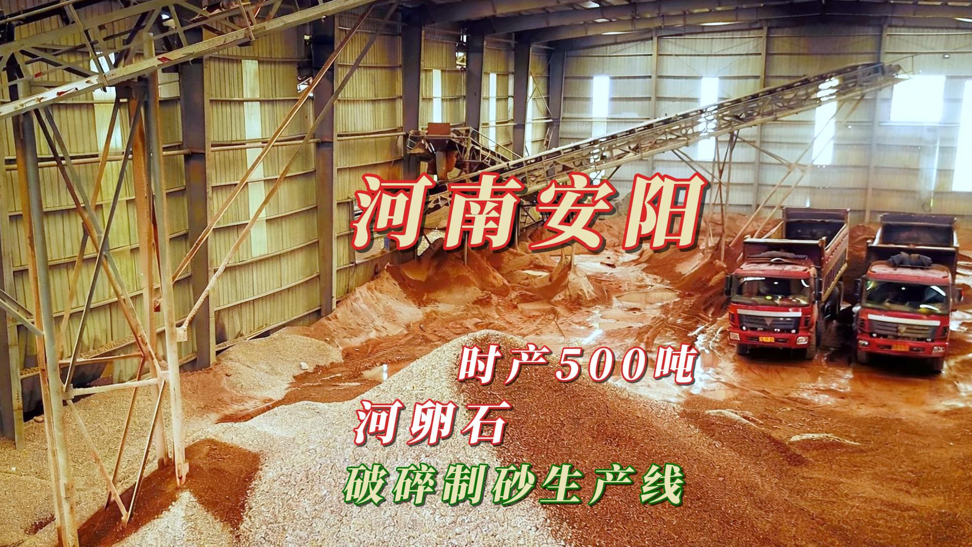 該生產(chǎn)線位于河南安陽縣安豐鄉(xiāng),2016年正式投產(chǎn),設(shè)計(jì)綜合產(chǎn)能約500噸/小時(shí),主要加工河卵石原料,服務(wù)于當(dāng)?shù)毓贰蛄?、建筑等工程建設(shè)。